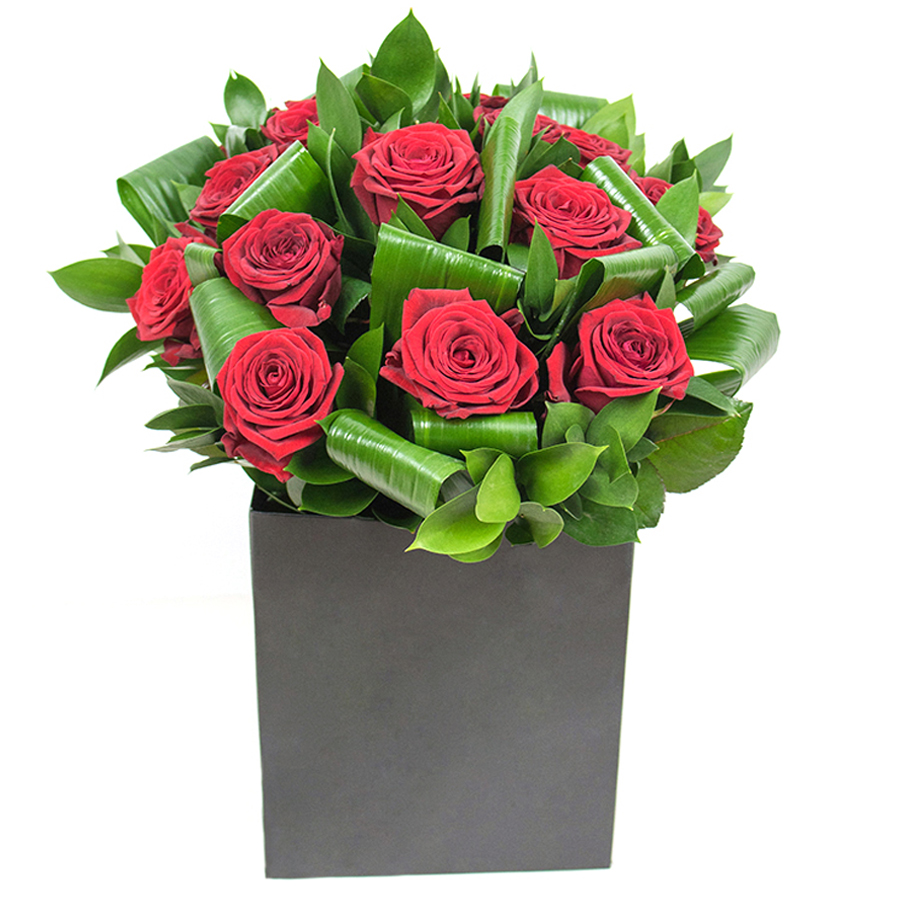 Infuse your home with style and grace through our chic bouquet, featuring stunning red roses, lush aspidistra leaves, and delicate ruscus. Each bloom is carefully hand-selected to ensure maximum freshness and visual appeal.