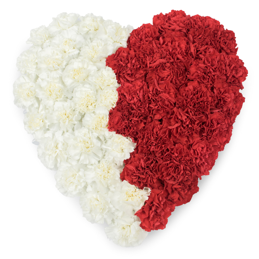 Indulge in the exquisite charm of our heart-shaped mixed carnations arrangement by Handy Flowers. This luxurious bouquet showcases a stunning combination of white and red carnations, perfect for conveying heartfelt emotions.